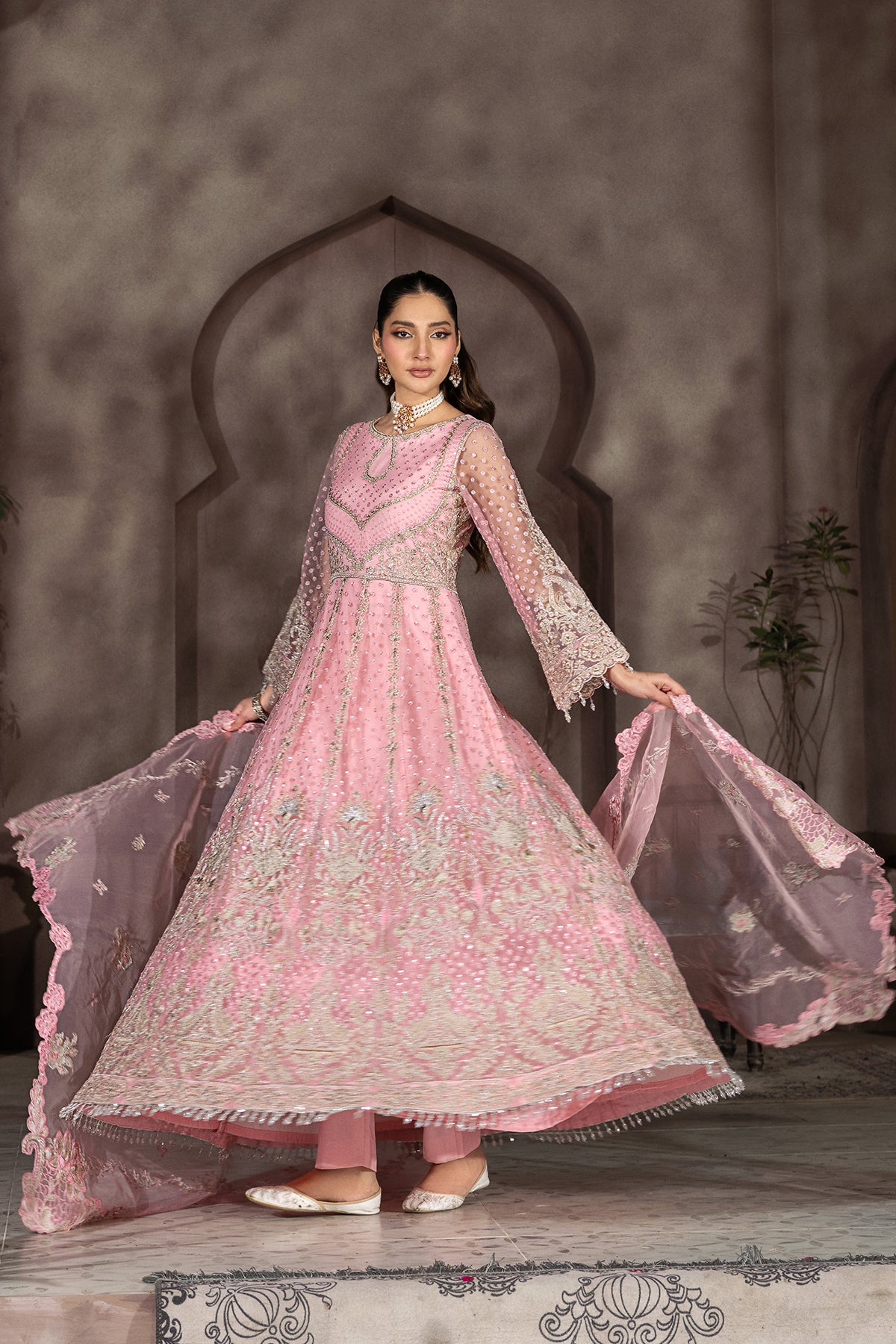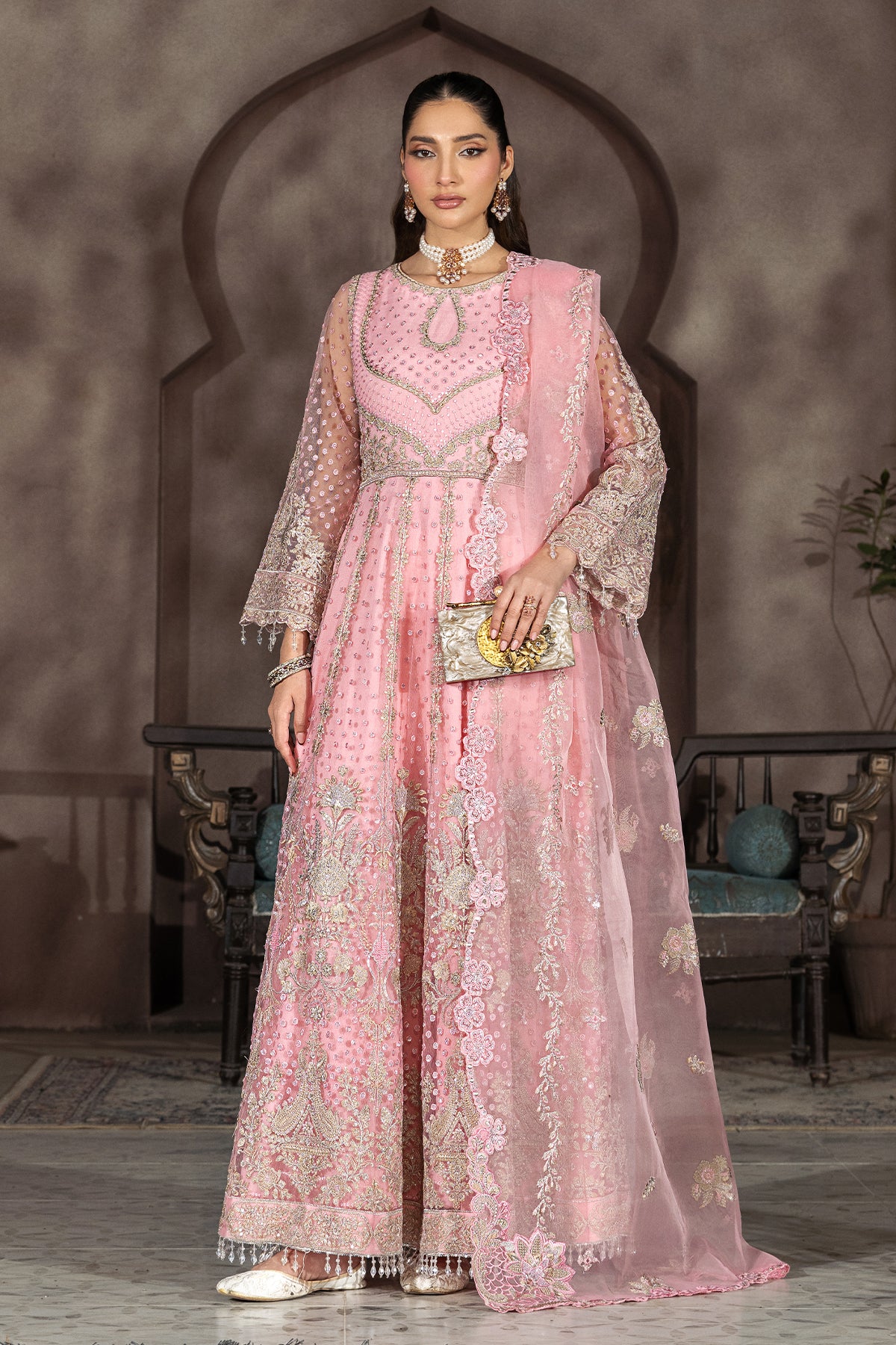 embroidered net 7 front panels with sequence