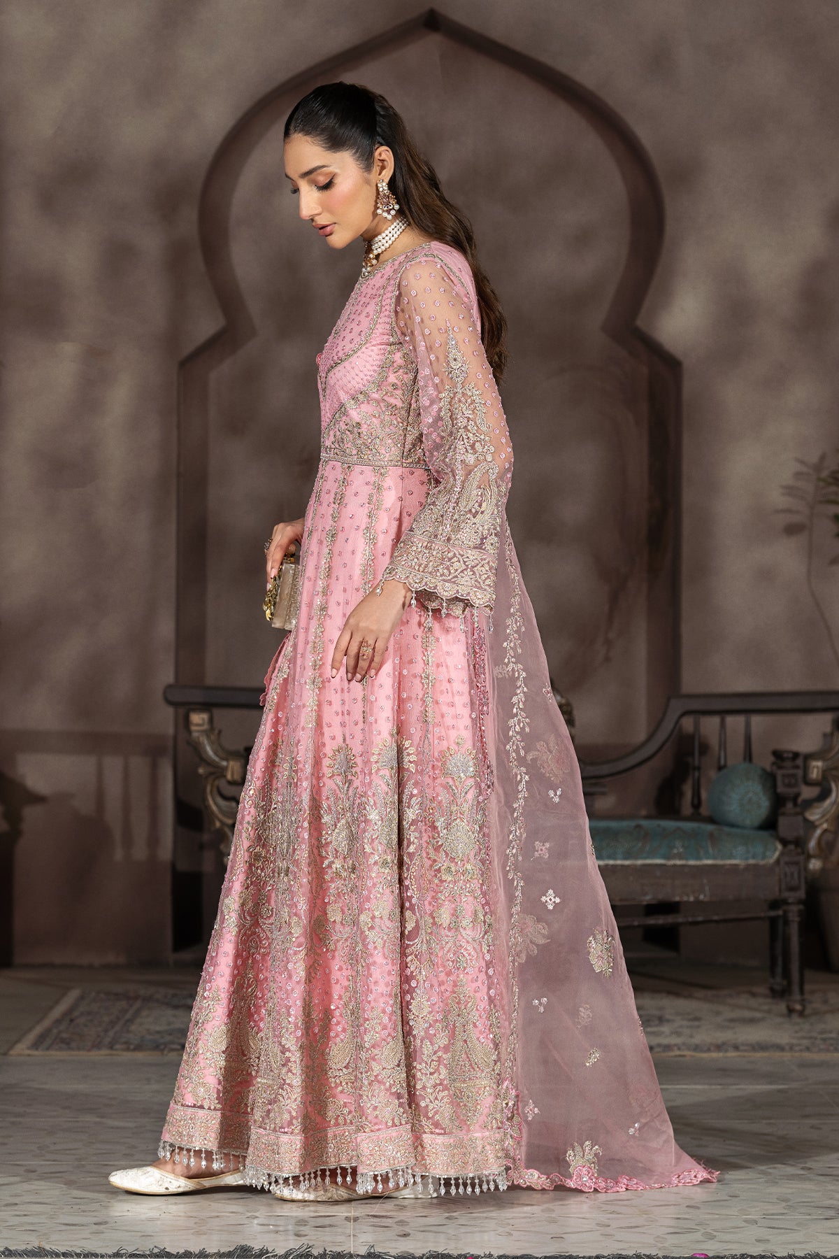 Embroidered net 7 front back panels with sequence