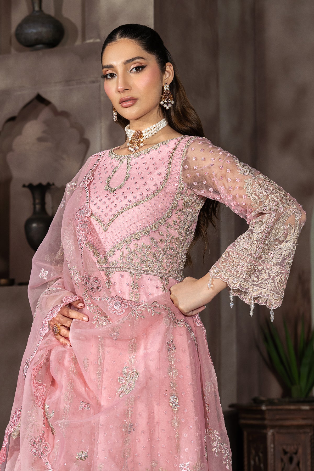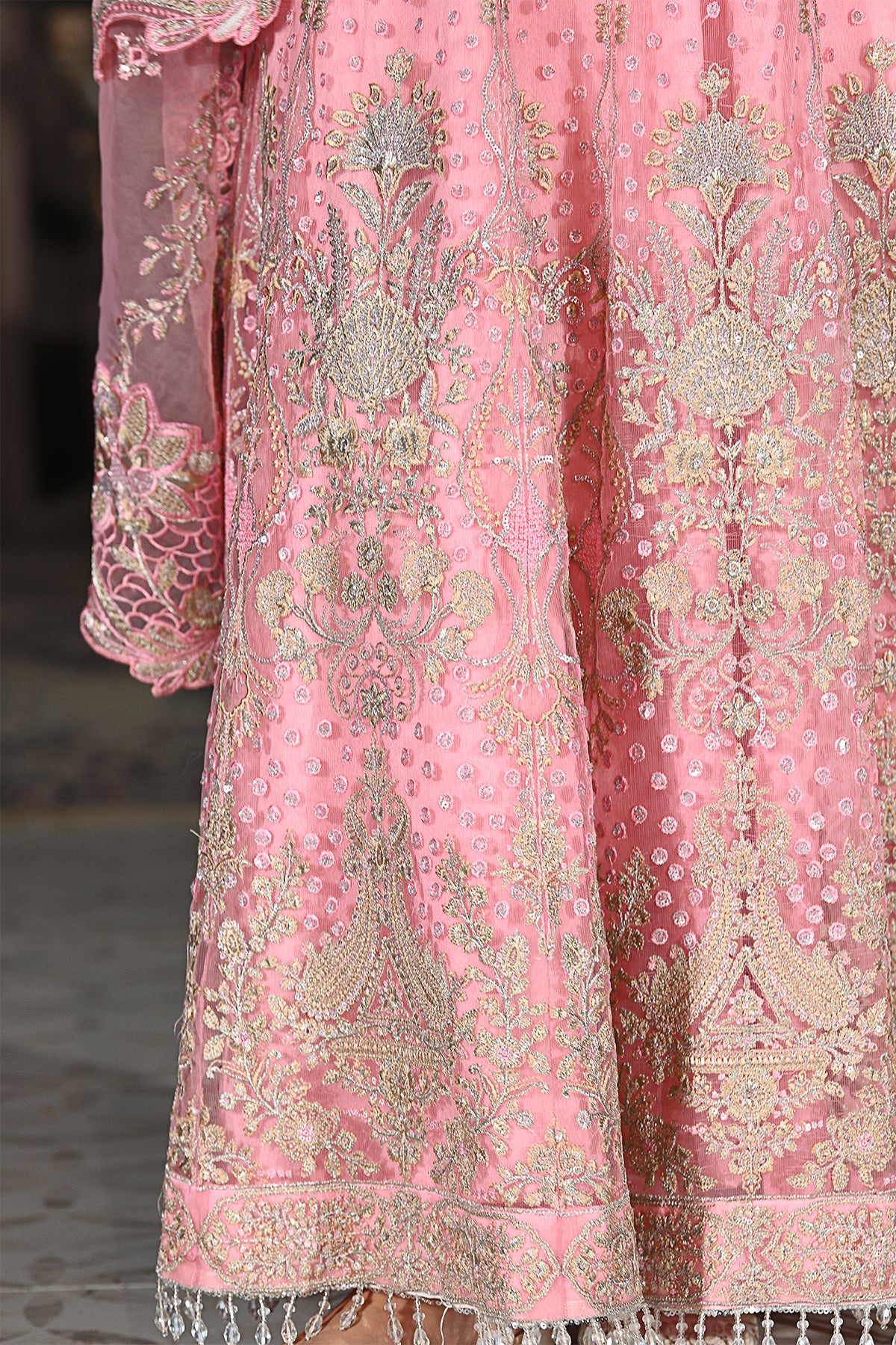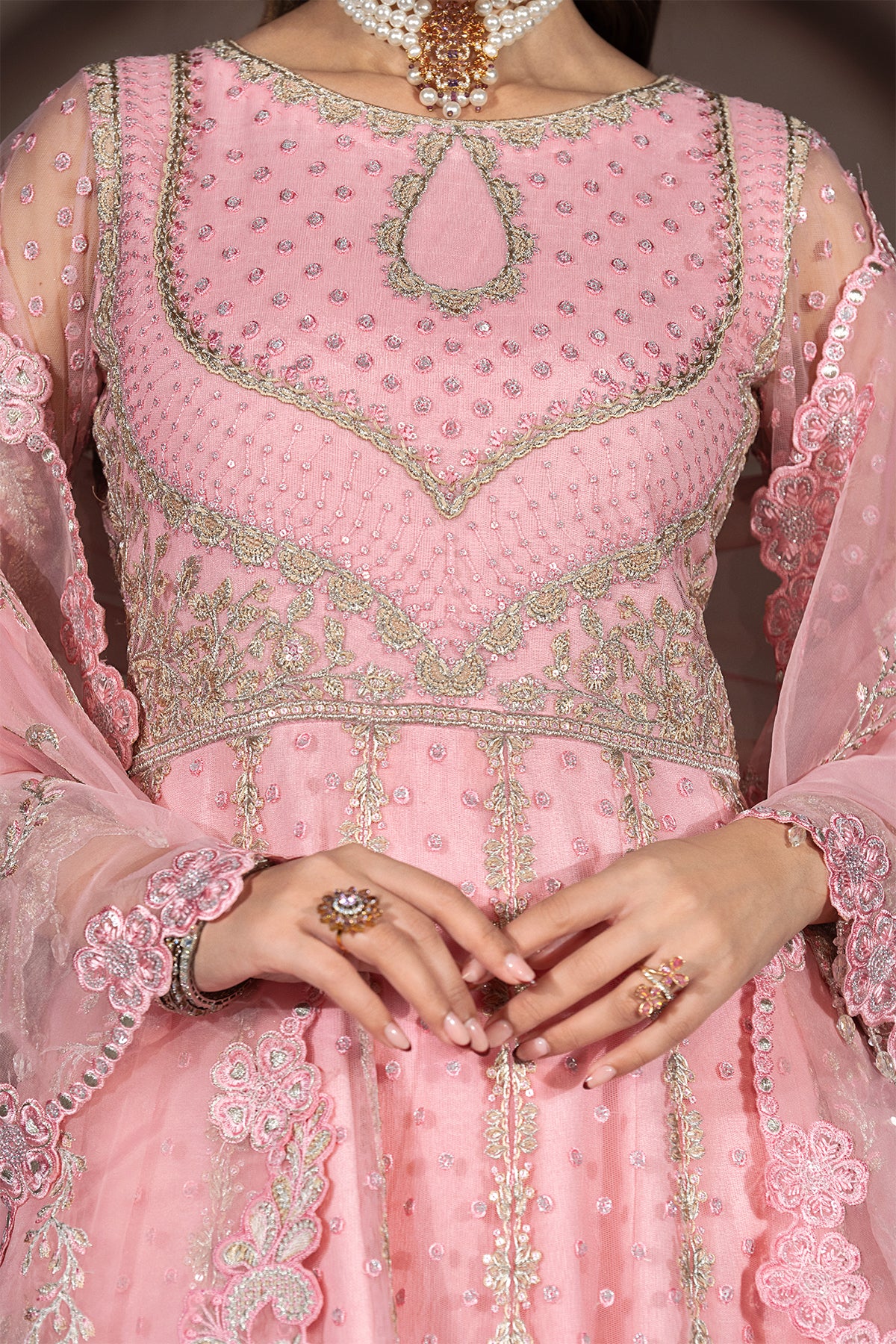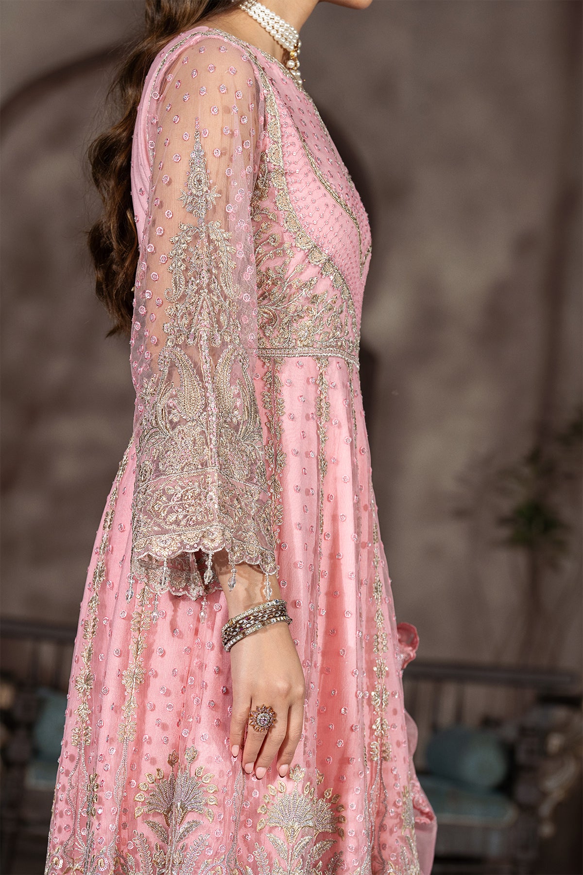 Embroidered net sleeves with sequence