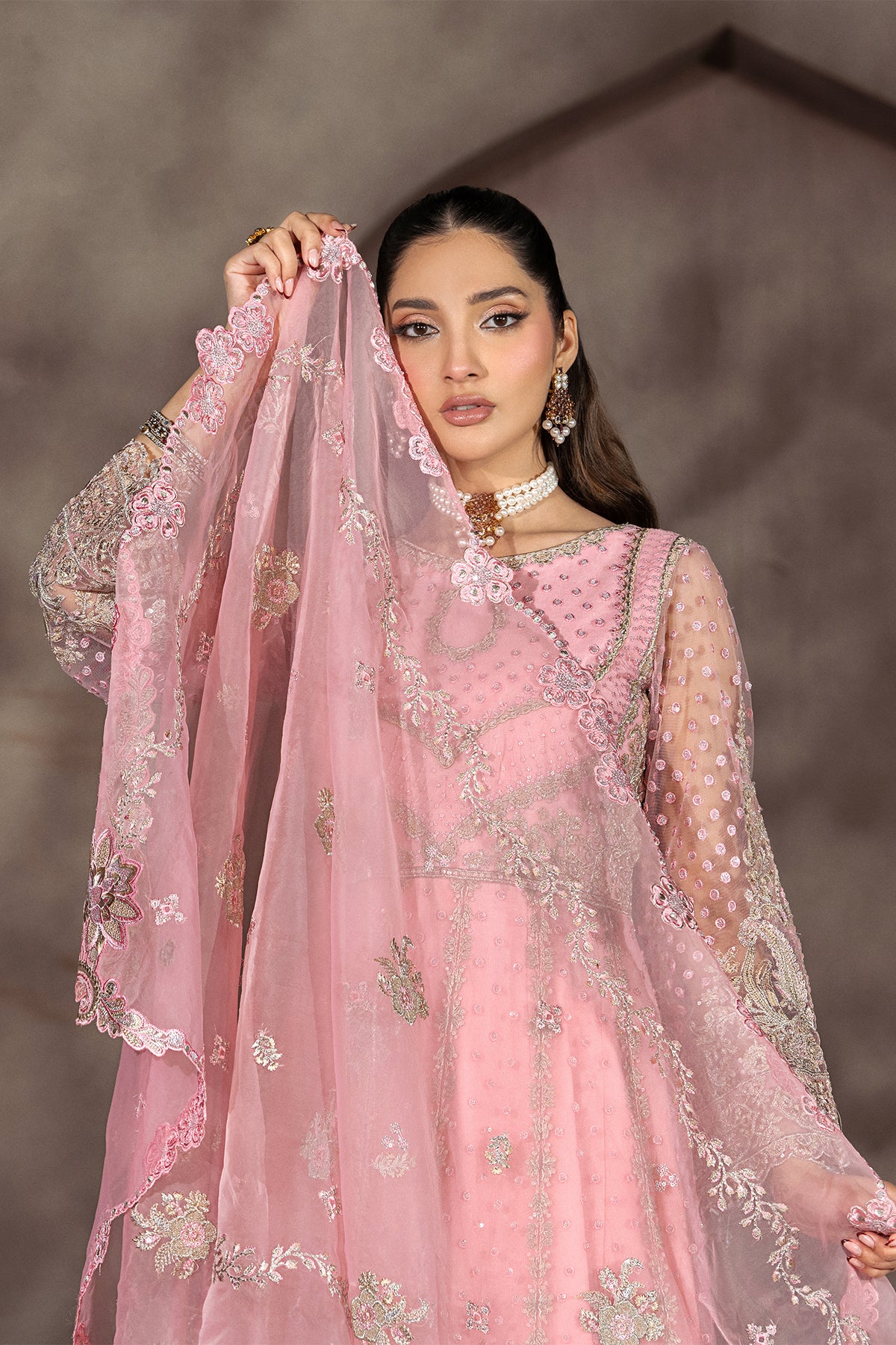 Embroidered organza dupatta with sequence