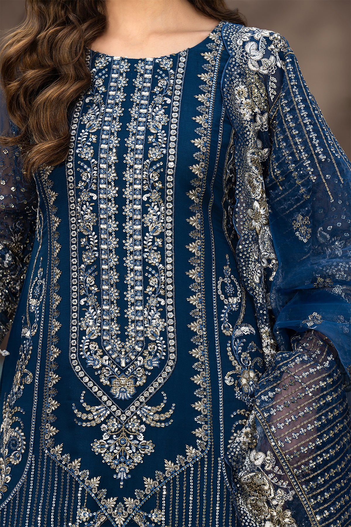 Embroidered Chiffon back with sequence